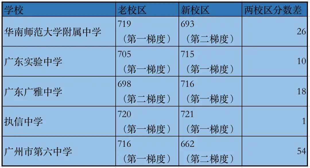 This year, No. 7 Middle School, Zhongyuan, No. 16 Middle School Headquarters, Guangzhou Middle School, No. 86 Middle School, Peiying (Baiyun New City Campus), Xiuquan, and Zhenguang (school main campus) are on the second gradient line. In addition to these schools last year, Yuyan and Tianhe Foreign Languages were on the second gradient line;