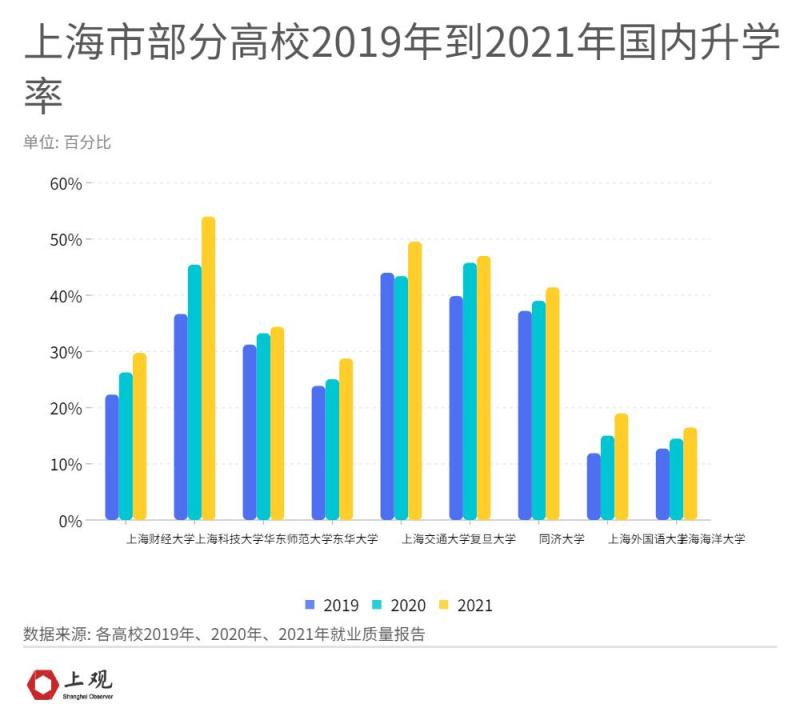 In addition, Shanghai Jiao Tong University (excluding medical school), Tongji University, and Fudan University are also very popular in domestic admissions, accounting for more than 40%, and Shanghai Jiao Tong University and Fudan University will also account for nearly 50% of domestic admissions in 2021.